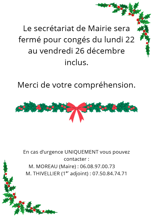 N'hésitez pas à l'utiliser en cas de besoin ou à vous renseigner auprès du secrétariat de Mairie.